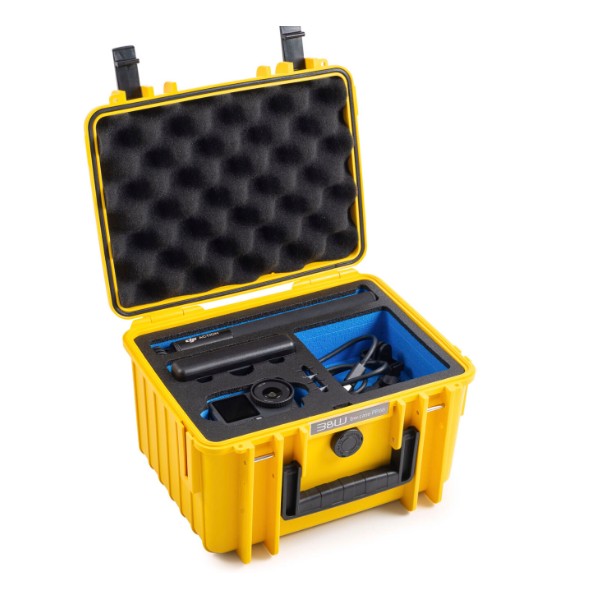 PROTECTION OPTIMALE : Appareil photo, perche d'extension (1,5 m), station de charge à 3 emplacements avec batteries insérées, cartes microSD – tout est rangé en toute sécurité et prêt à l'emploi dans l'insert parfaitement ajusté – aucun mouvement, aucun cliquetis. Le compartiment universel supplémentaire (117 x 102 x 52 mm) offre un espace pour les accessoires tels que câbles, vis ou adaptateurs.
