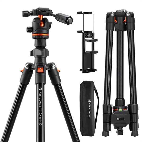 De 56 cm à 182 cm】Grâce à ses 4 sections et son axe central ajustable sur deux niveaux, atteignez une hauteur de vue de 1,82 m. Les pieds offrent 3 angles d'inclinaison pour s'adapter parfaitement à tous les types de terrains.