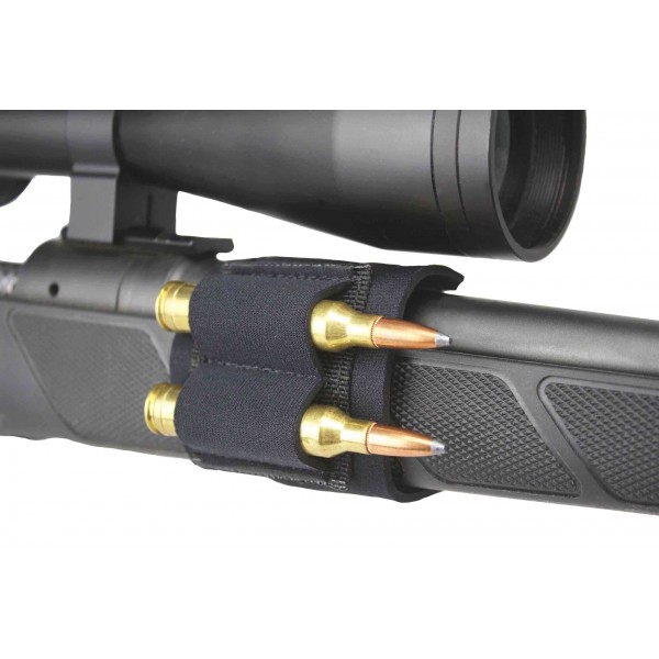 Porte-munitions en néoprène à 2 cartouches qui se fixe à la zone de la poignée avant de votre carabine.