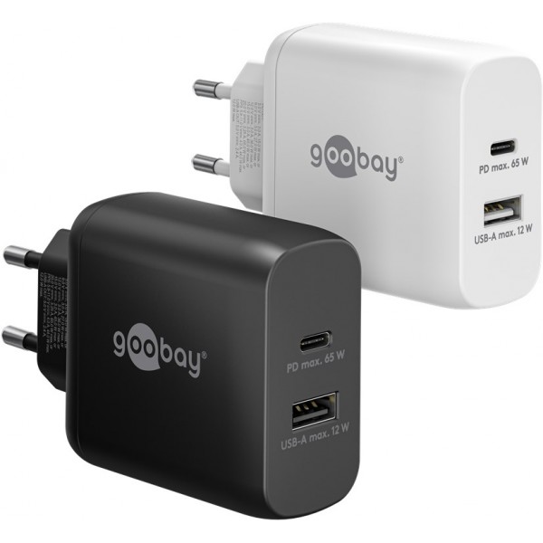 Chargeur Rapide Double USB-C™ PD GaN (65 W) noir